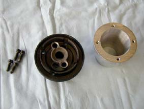 アダプターにボス部を取り付ける これでステアリングボスは完成です モモF1ステアリングが装着できます これでハンドル位置(前後位置)はほぼ標準タイプと同じになります (モモ6本ネジ用も同じように取り付け増す、ディッシュタイプのステアリングはスペーサー部を外すことにより少し前方にステアリングが移動します) |